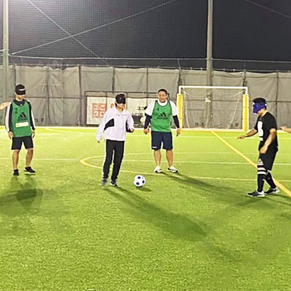 (講師:鳥養 祐矢)声や音を頼りに、音の出るボールを使った5人制のサッカーで、パラリンピックの正式種目です。アイマスクを着けることで見える世界を体感してみましょう。