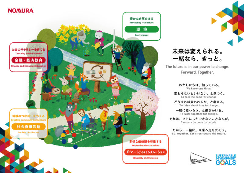 野村グループは、社会課題の解決を通じた持続的成長の実現に向けて、「ダイバーシティ、エクイティ& インクルージョン」を重要な要素の1つと位置づけ、推進していきます。多様な人材は、競争力とイノベーションの源泉です。私たちは、社員一人ひとりが自らのもつ能力や個性を十分に発揮して活躍できるよう、あらゆる場面において公平な機会をを提供することで、多様性のあるインクルーシブな職場づくりを目指します。