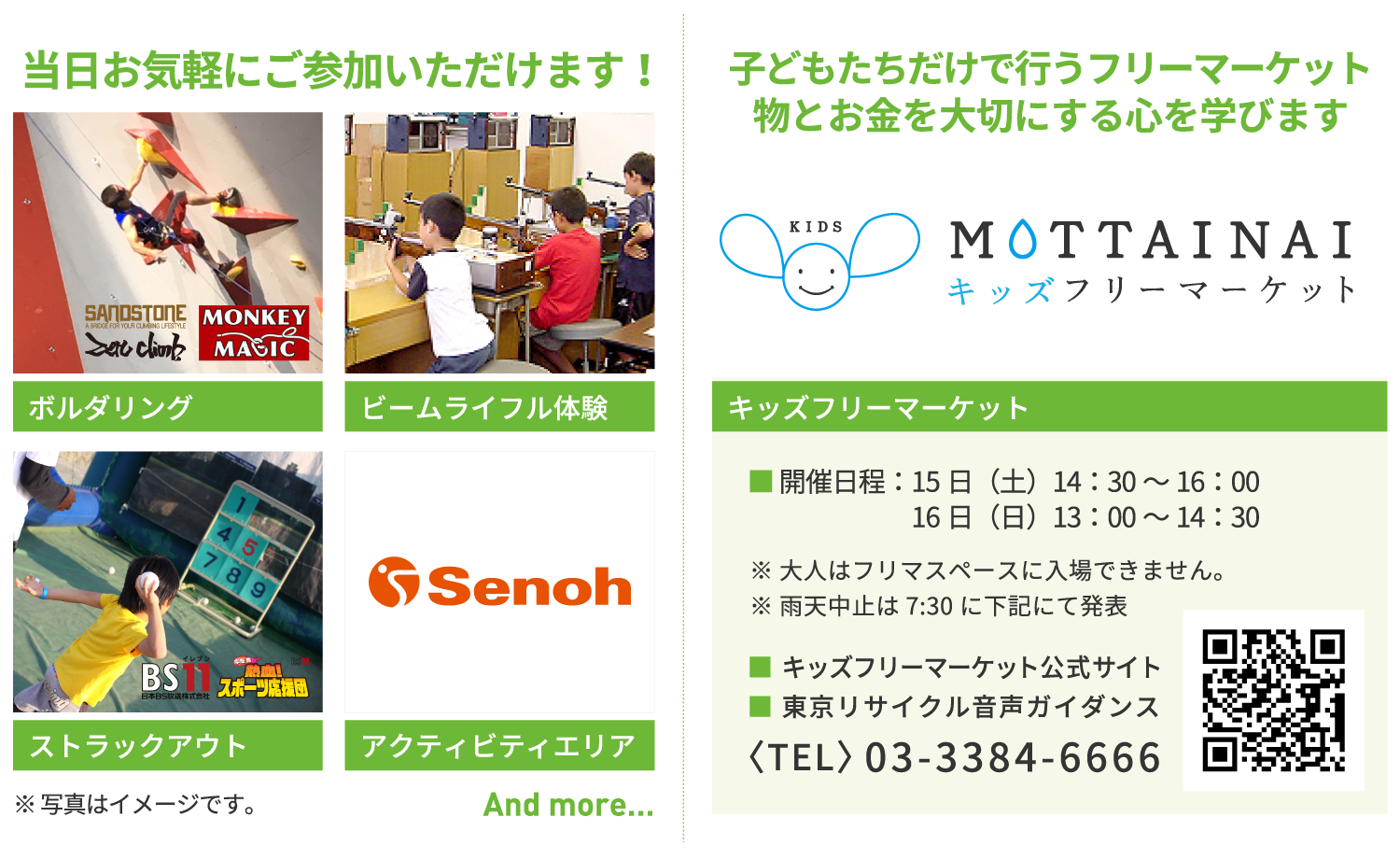 パラ種目でもあるパワーリフティングやビームライフル、車いす体験、ボルダリングなど、障がいの有る無しに関わらず誰もが参加できる体験型エリアを充実させました。