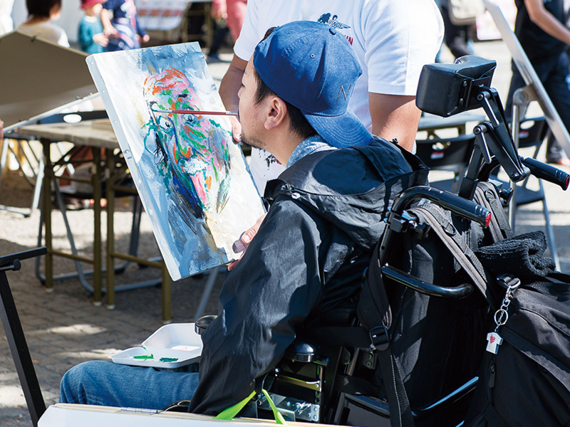 1971年長崎市生まれ。聾唖(ろうあ)者のご両親の元に生まれ、幼い頃から絵を用いてご両親とコミュニケーションを取っていた門さん。「絵・手話・コミュニケーション」をキーワードにしたアート活動を広げる中で、その独特なスタイルが注目され、日本各地で、共通言語にとらわれない、コミュニケーションで心を繋ぐワークショップを開催している。