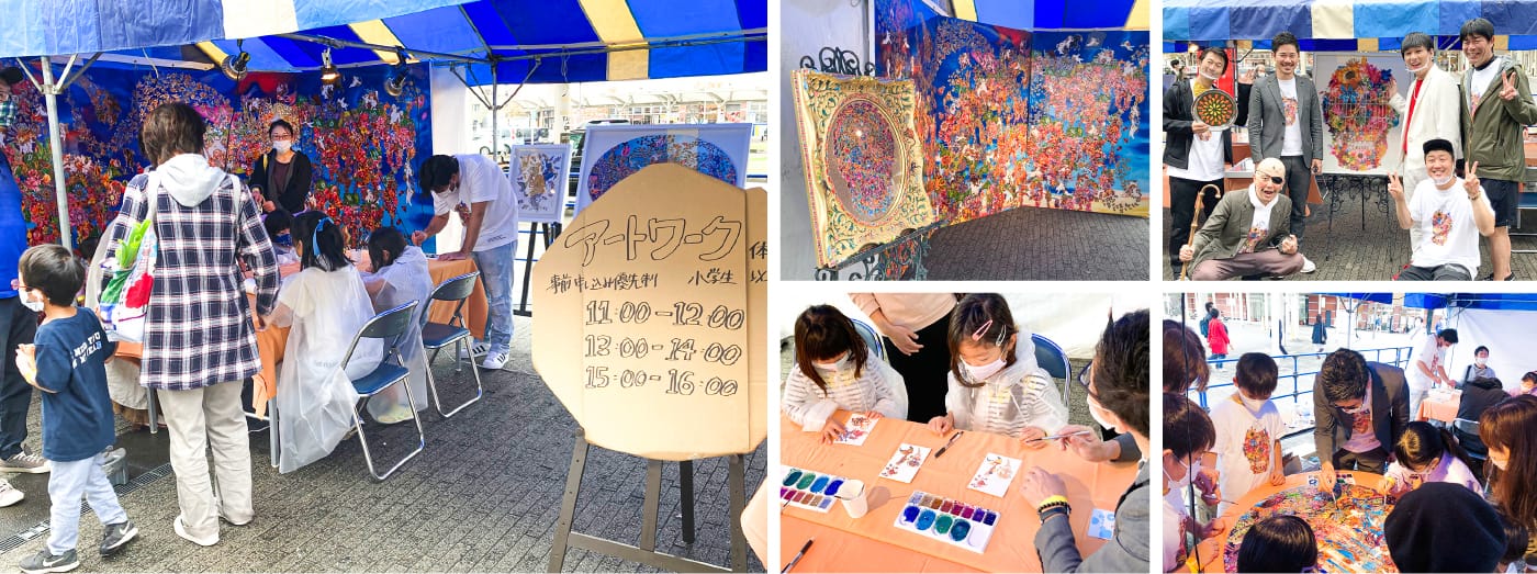 今回メインビジュアルを担当した現代美術家の鎌谷徹太郎さんよるアートワークショップを開催しました。はがきサイズで描いたイメージと同じ世界観の作品をつくり、絵を描くだけではない表現の喜びを感じでもらいました。