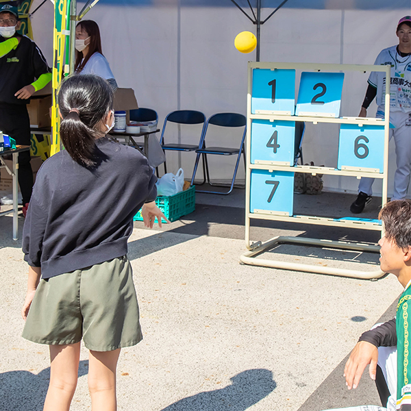 (講師:B-Rings)大分のプロ野球チーム「B-Rings」のブースではストラックアウトを実施。