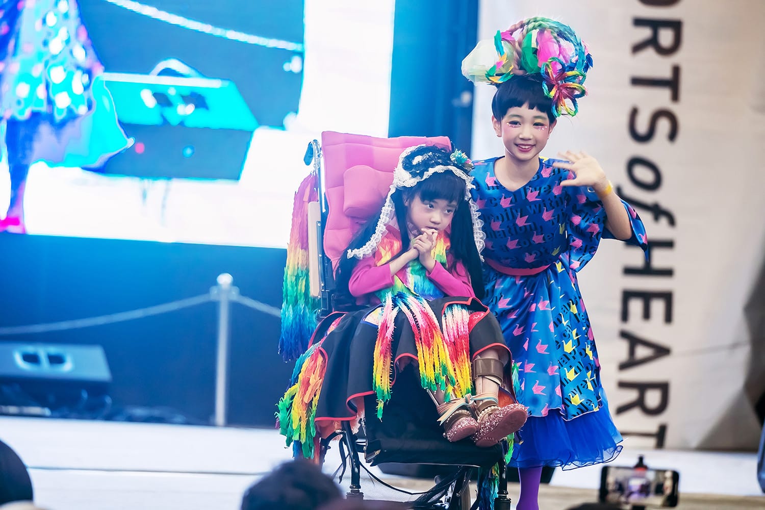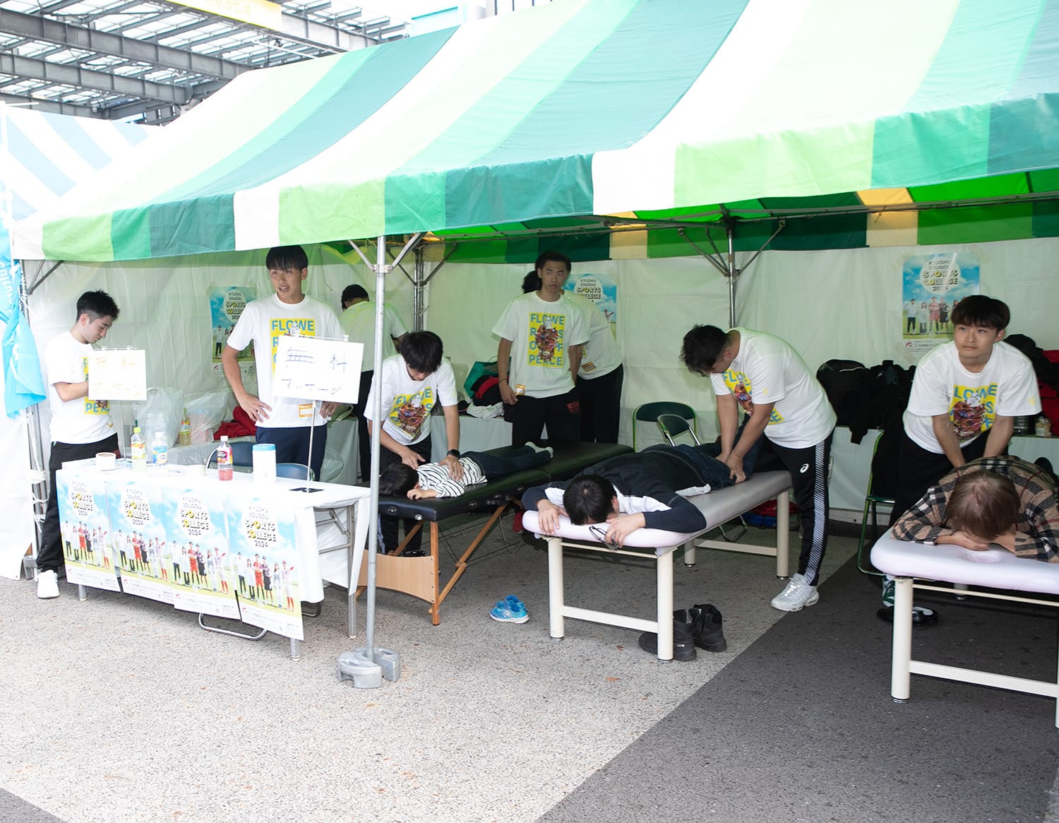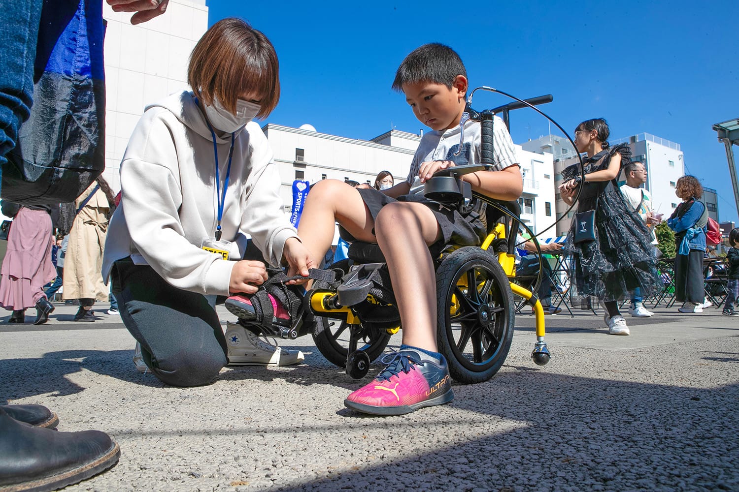 (講師:山本篤)健常者の子どもから大人までが義足の体験ができるブースです。パラ陸上の山本篤選手と一緒に、義足で歩いてみましょう。