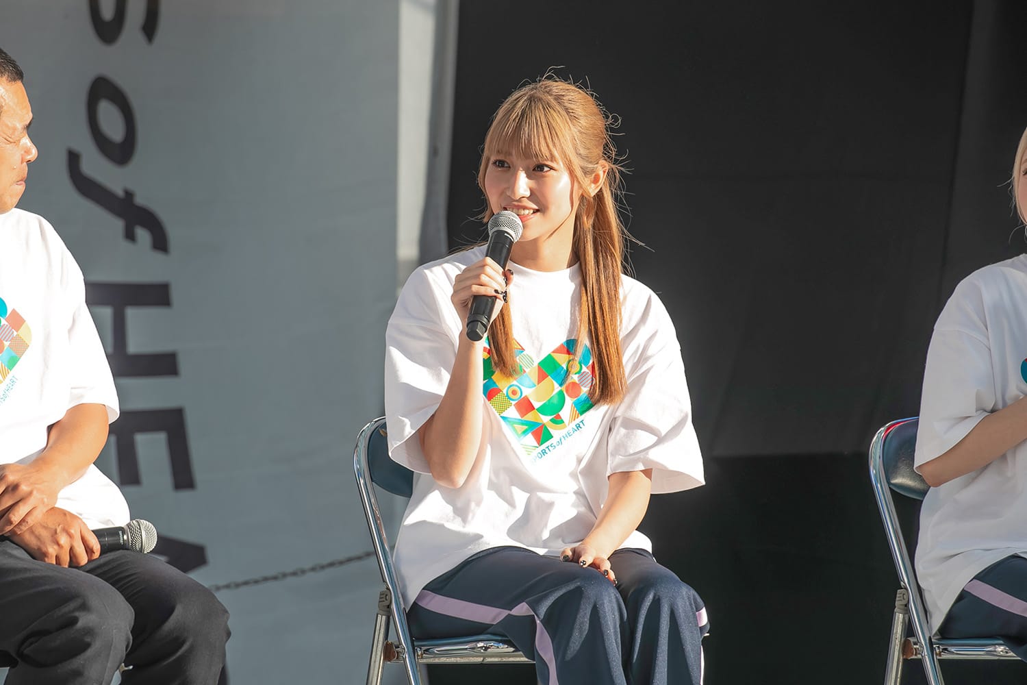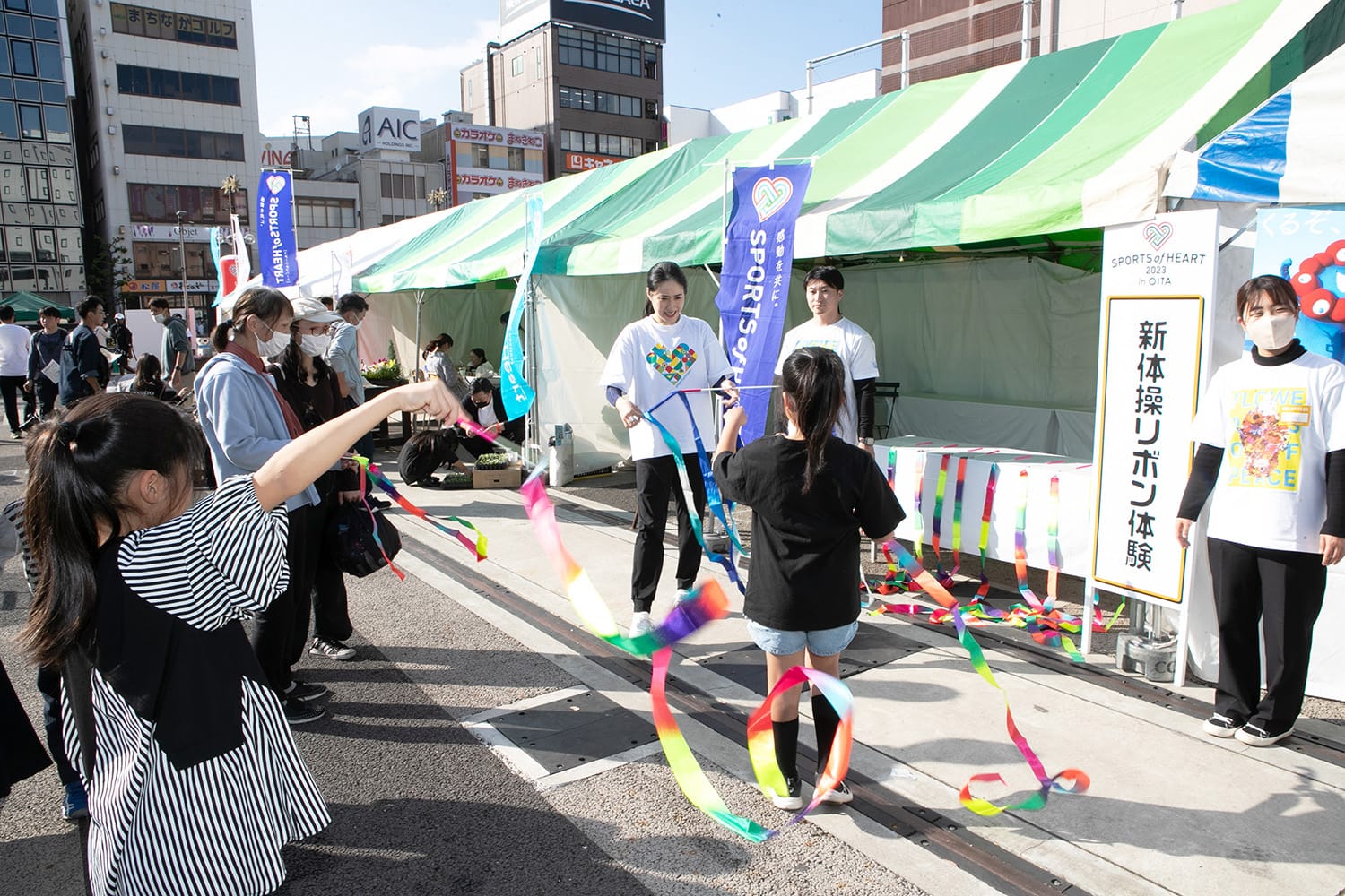 リボンを回したり、弧を描くように投げたりする種目の「リボン」を元オリンピック代表の田中琴乃が競技の魅力をお伝えながら楽しく体験できるブースです。
