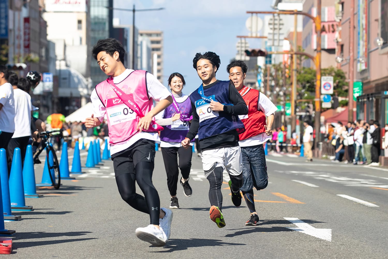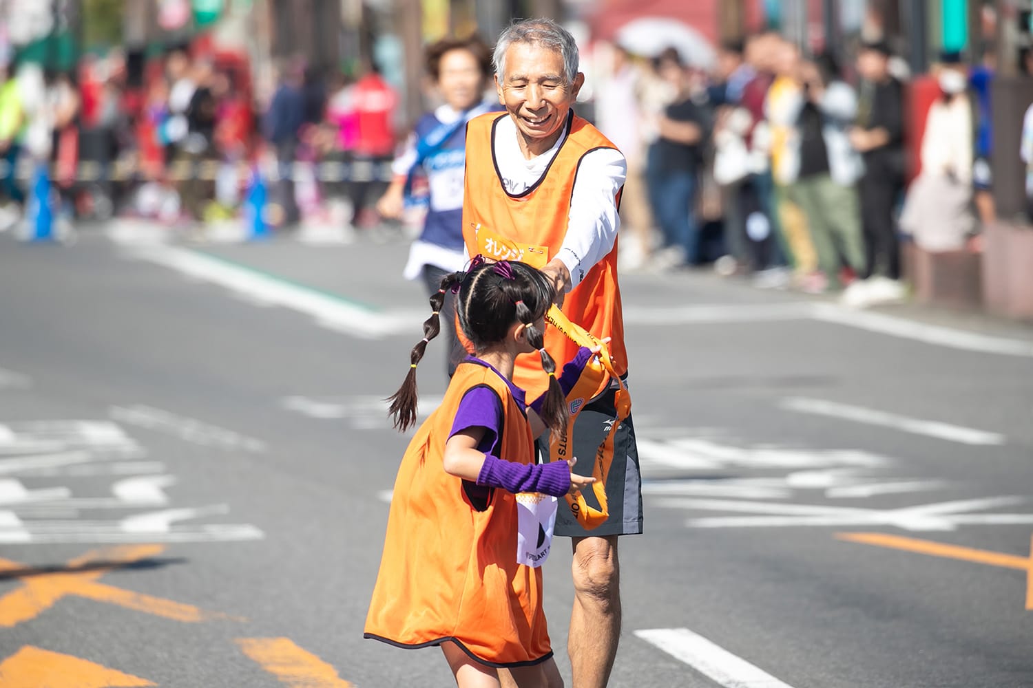 一般ランナーが心ひとつに走り、タスキをつなぎます。