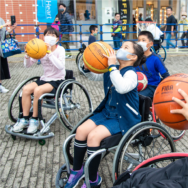 競技用の車いすを巧みに操作しながらプレーするバスケットボール。一緒にフリースロー対決をしてみよう。